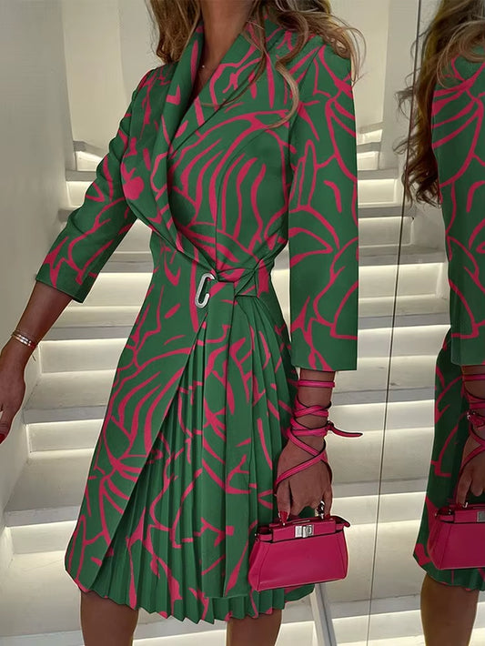 Vibe Curve: Deep V-Neck Belted Print Dress